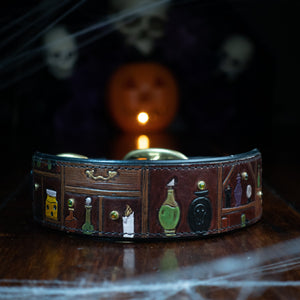We use solid brass and nickel-plated solid brass hardware for our collars. These center-bar buckles and D-rings are tested for strength and durability. We use chicago screws with Loctite permanent rivet glue to ensure our collars are as durable and strong as they are beautiful. The safety and comfort of your dog is our top priority!