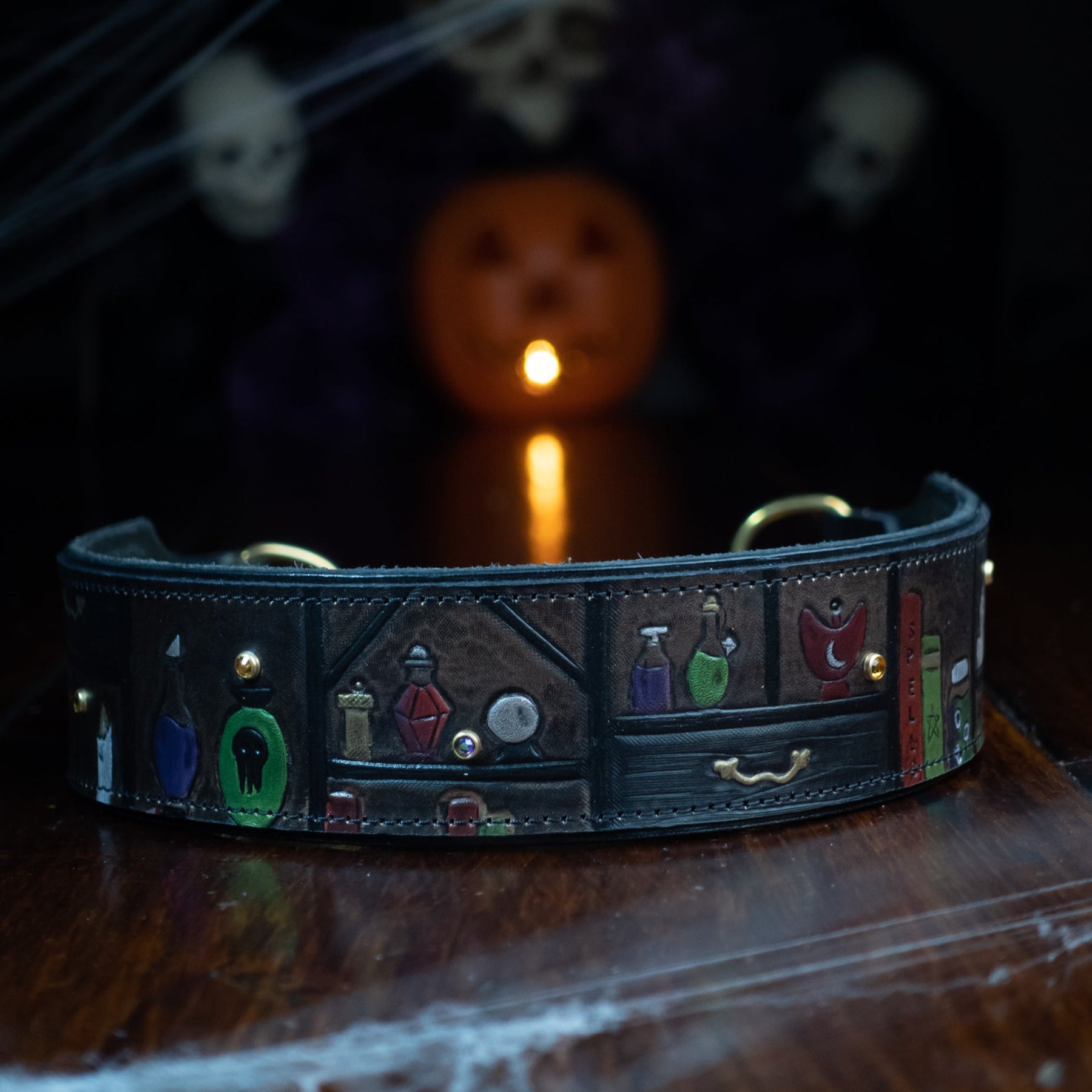 We use solid brass and nickel-plated solid brass hardware for our collars. These center-bar buckles and D-rings are tested for strength and durability. We use chicago screws with Loctite permanent rivet glue to ensure our collars are as durable and strong as they are beautiful. The safety and comfort of your dog is our top priority!