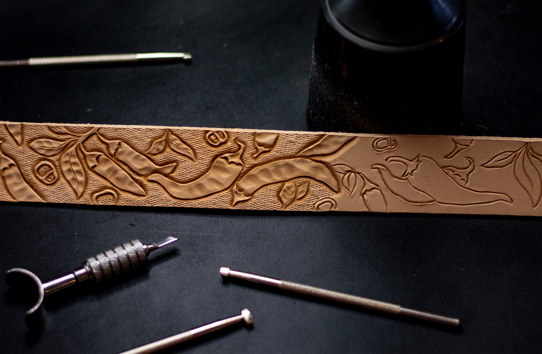 We use solid brass and nickel-plated solid brass hardware for our collars. These center-bar buckles and D-rings are tested for strength and durability. We use chicago screws with Loctite permanent rivet glue to ensure our collars are as durable and strong as they are beautiful. The safety and comfort of your dog is our top priority!